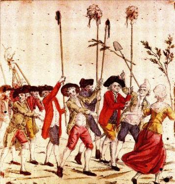Dansés sur un air de menuet, ces vers prouvent que tout fut bon à chansonner. Contre l’avis de Guillotin (député, médecin et philanthrope), on baptisa guillotine ces « bois de justice »  . Premier guillotiné, un voleur de grand chemin, Nicolas Pelletier, exécuté en place de Grève (aujourd’hui place de l’Hôtel-de-Ville), le 25 avril 1792. La guillotine va beaucoup servir sous la Terreur et faire le spectacle : il y a foule d’amateurs, avec les « tricoteuses »   au premier rang, bien assises.