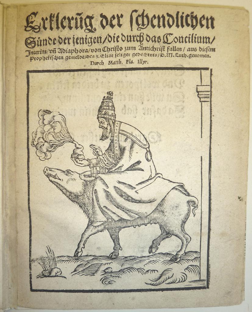 « Pape Léon X chevauchant une truie, tenant dans sa main gauche un excrément qu’il bénit de sa main droite. »  4