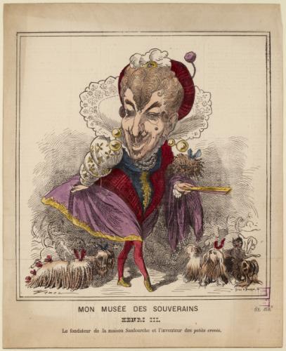 Mon Musée des souverains. Henri III / 7. Illustration de périodique. Musée Carnavalet. Portrait d’Henri III plus efféminé que nature à la veille de son assassinat en 1589.