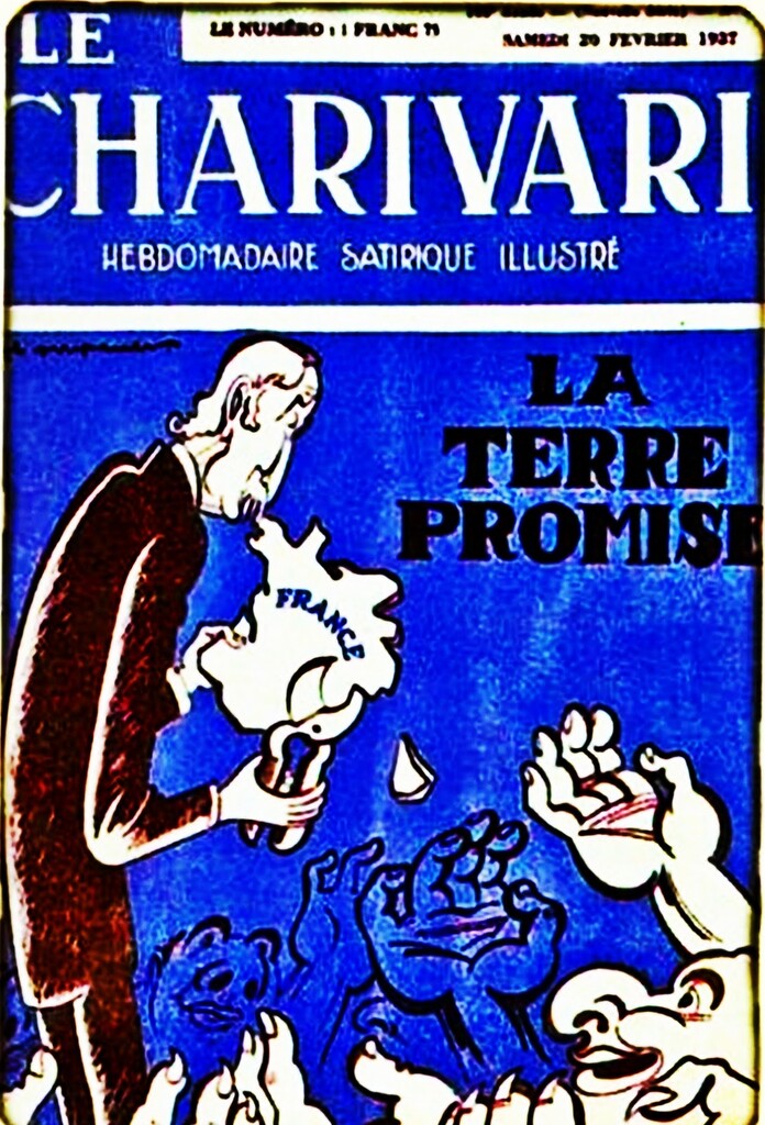 La Terre promise, caricature de Léon Blum par Ralph Soupault (1904-1962), Le Charivari (en couverture), 20 février 1937. (lithographie en couleur). Collection privée.