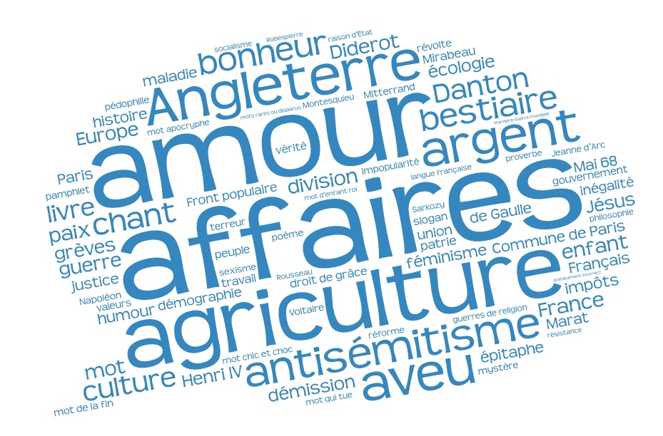 L’indexation en « libre-service » est une manière de partager notre Histoire en citations. Elle privilégie la thématique, par ordre alphabétique – mais la chronologie reprend ses droits, chaque citation apparaissant avec son commentaire.
