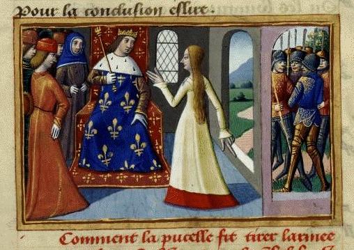 Telle est sa réponse aux conseillers de Charles VII, qui lui demandent la raison de sa venue. Curieusement, ses mots ne semblent pas les surprendre. Le lendemain, on la conduit dans la salle du trône, au château de Chinon.