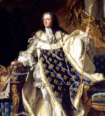 Enfant roi de 5 ans, il fait son apprentissage sous la Régence (Philippe d’Orléans), laissant ensuite gouverner son ex-précepteur le cardinal de Fleury (73 ans) pour le plus grand bien du pays. « Beau comme l’Amour » , adoré du peuple, marié à 15 ans, époux sitôt comblé, il règne enfin à 33 ans.