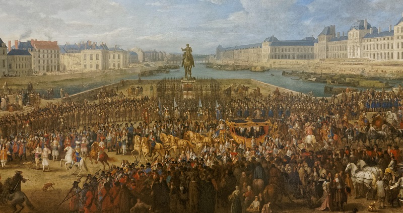 En 1682, le roi quitte le palais du Louvre à Paris pour s’installer au château de Versailles. La ville devient symboliquement la capitale de la France – la force du symbole étant ici particulièrement éblouissante.