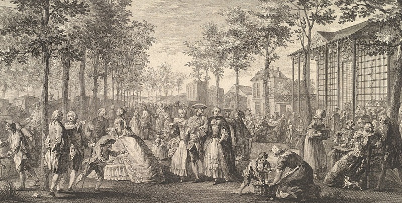 Suivant une alternance logique, il s’oppose en tout au XVIIe. Paris redevient la capitale des plaisirs, des spectacles et des affaires, des salons et des nouveaux cafés à la mode. L’art de vivre et le rayonnement culturel de la France sont à l’apogée. Malgré la censure, la pensée des philosophes forme l’opinion publique justement « éclairée » , tandis que les Parisiens et les « poissardes » expriment ouvertement un mécontentement de plus en plus révolutionnaire.